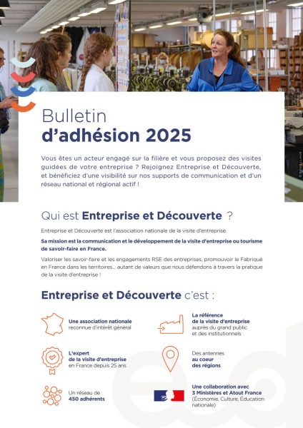 Vous êtes un acteur engagé sur la filière et vous proposez des visites guidées de votre entreprise ? Rejoignez Entreprise et Découverte, et bénéficiez d’une visibilité sur nos supports de communication et d’un réseau national et régional actif !