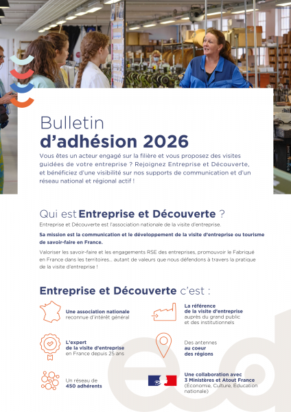 Vous êtes un acteur engagé sur la filière et vous proposez des visites guidées de votre entreprise ? Rejoignez Entreprise et Découverte, et bénéficiez d’une visibilité sur nos supports de communication et d’un réseau national et régional actif !
