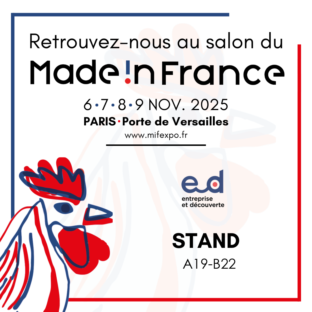 - Aux côtés du label Entreprise du Patrimoine Vivant ( SGS - Réseau Excellence) et d'Origine France Garabtie, Entreprise et Découverte vous donne rendez-vous au stand A19-B22 pour un stand de démonstration des savoir-faire français et de dégustations de spécialités françaises !