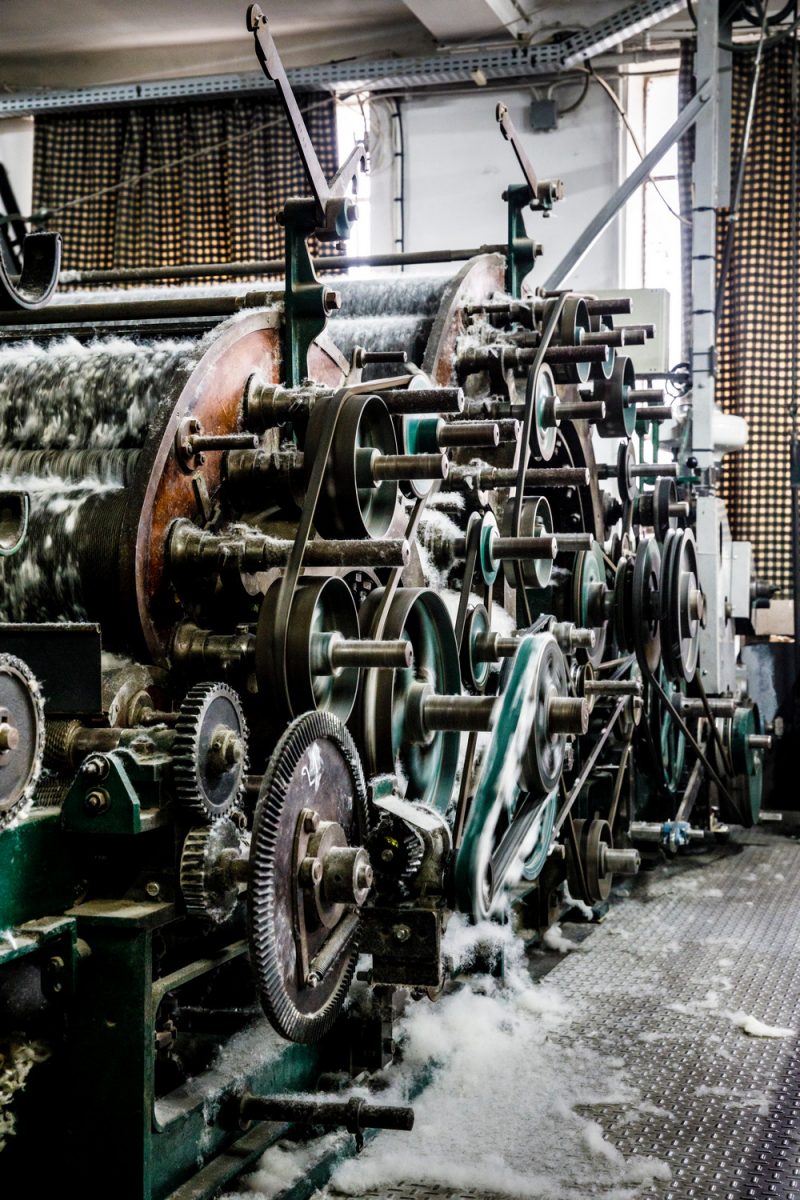 Le cardage est une opération qui consiste à démêler et à aérer la laine. C’est une étape fondamentale pour aligner les fibres dans le sens de la longueur.
