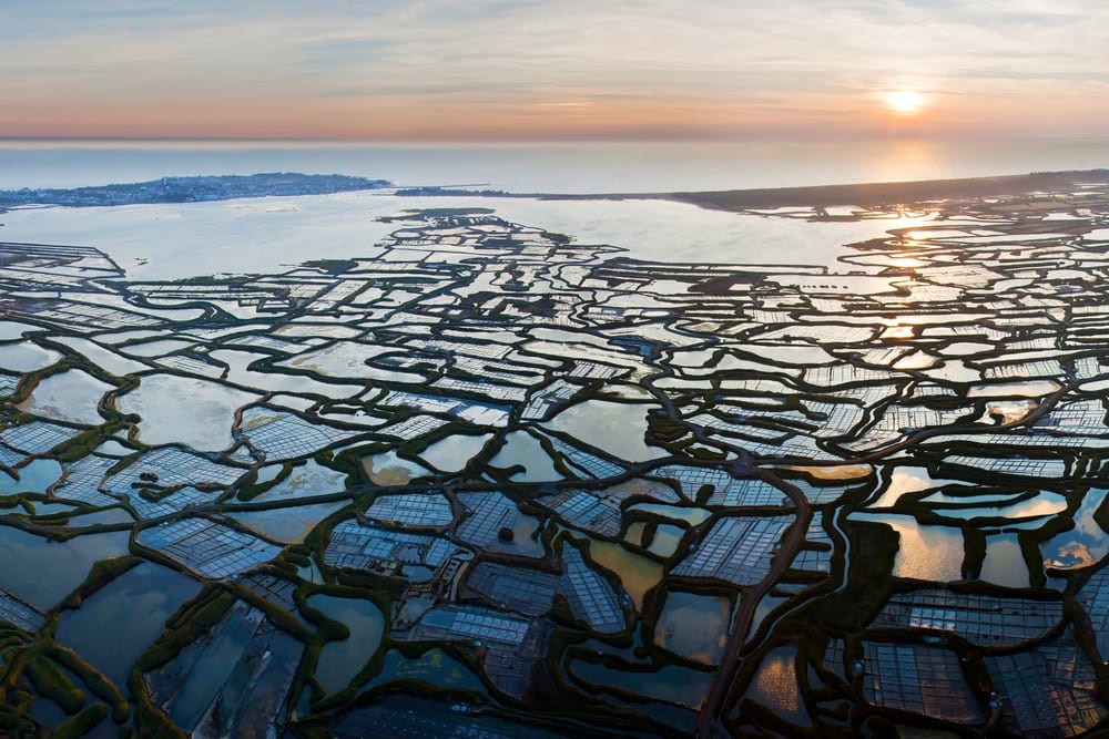 – À Guérande. Considérée comme la « Carcassone de l’Ouest » avec sa cité médiévale, elle doit surtout sa renommée aux célèbres marais salants qui s’étendent sur près de 2000 hectares.