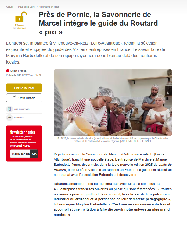Emmanuelle Bauquis, auteure du Routard de la Visite d’Entreprise, était l’invitée de Manuelle Calmat dans l’émission « Ma France, le Journal des Régions ». Avec les témoignages de Corinne Sellier de la Biscuiterie de l’Abbaye et de Claire Jubert, de la Monnaie de Paris.