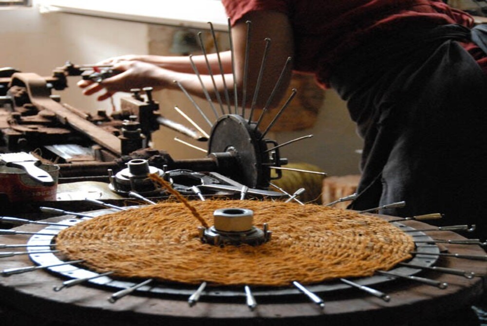 Installée dans la drôme, la Scourtinerie perpétue un savoir-faire rare autour du scourtin, autrefois utilisé pour l’extraction de l’huile d’olive. Aujourd’hui réinventé en objet de décoration, il est fabriqué sur des métiers à tisser traditionnels. La visite dévoile un atelier vivant, entre héritage et création contemporaine.