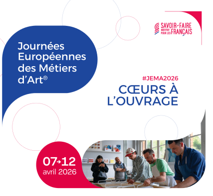 Coordonnées par l’Institut des Savoir-faire Français, les Journées Européennes des Métiers d’Art (JEMA) reviennent afin de mettre un coup de projecteur sur le secteur des métiers d’art ! Des produits connus mais des métiers et des gestes peu connus, cet évènement est l’opportunité de découvrir les hommes et femmes derrière chaque création.