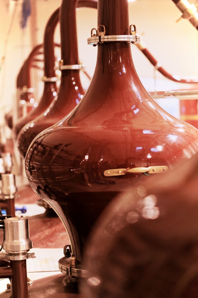 L’alambic charentais est un alambic fabriqué en cuivre, en raison de sa capacité à conduire uniformément la chaleur. C’est dans cet objet que se produit la distillation de l’alcool pour créer l’eau-de-vie, puis le cognac. Leur conception et dimension sont très contrôlées.