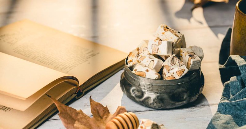 Premier arrêt de notre voyage gourmand, le nougat. Avec environ 3000 tonnes produites chaque année, c’est une véritable icône de la confiserie artisanale! Son nom vient du latin « nux gatum », signifiant « gâteau à base de miel et de noix ». Confectionné par les Romains, il aurait remonté le Rhône pour s’implanter à Montélimar, en Provence. Le nougat est traditionnellement composé de miel, de blancs d’œufs et de fruits secs, comme les amandes et les pistaches, lui donnant texture à la fois tendre et croquante.