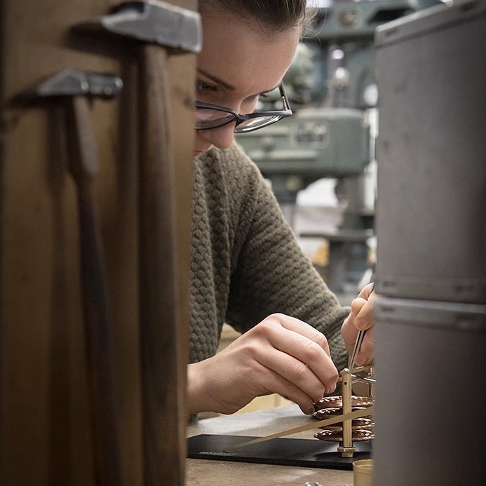 Vous découvrirez également la zone de fabrication mécanique, où chaque pièce est façonnée à la main : outils de presse, usinage fin et gestes précis hérités des anciens.